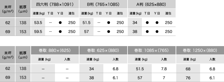 *紙質データは参考値であり、保証値ではありません。 紙質データは予告無く変更する場合がございます。