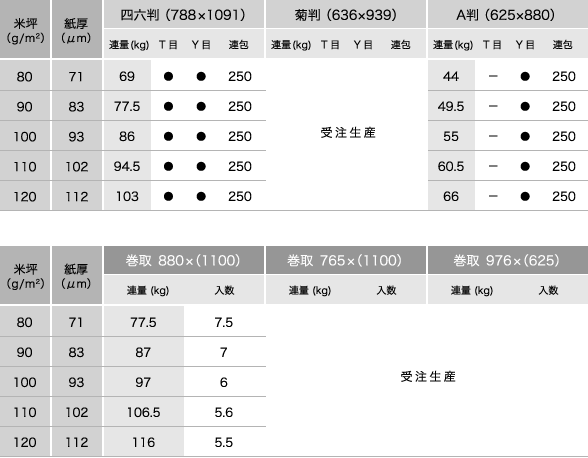 *紙質データは参考値であり、保証値ではありません。