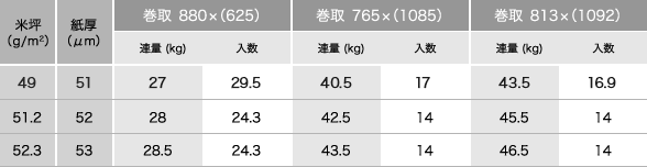 *紙質データは参考値であり、保証値ではありません。 紙質データは予告無く変更する場合がございます。