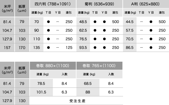 *紙質データは参考値であり、保証値ではありません。 紙質データは予告無く変更する場合がございます。